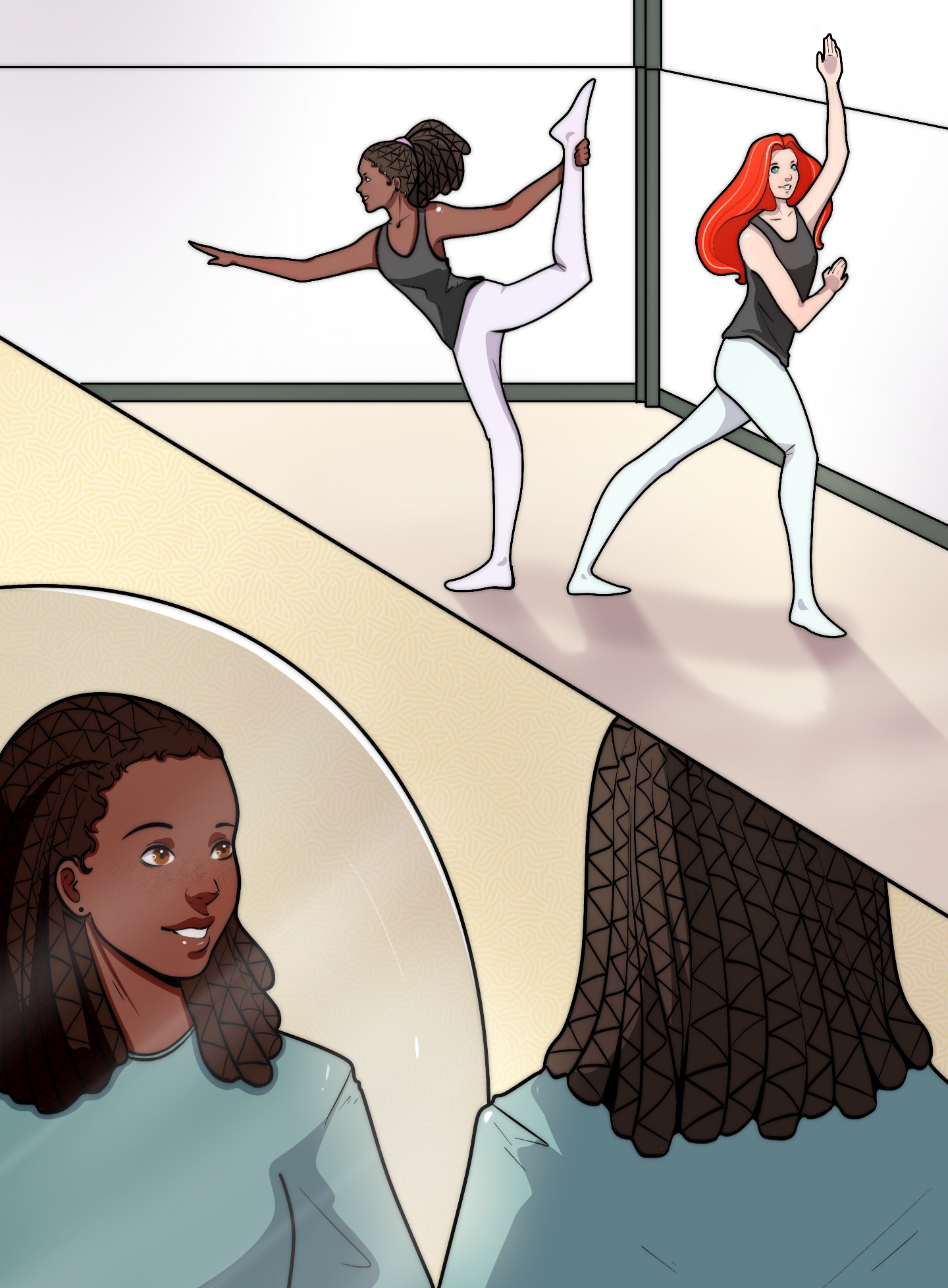 I catch a glimpse of my reflection in the small mirror against my bedroom wall. Tiny dark freckles cover my brown skin, and braids flow just past my shoulders. I smile.