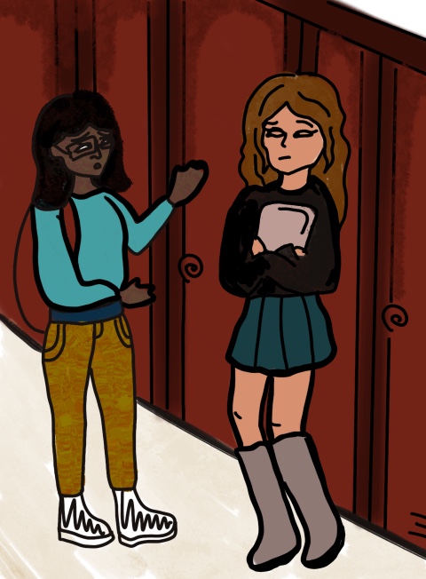 Stella looks to her side and nods her head. At that point, my former friend Ana, who was doing her makeup by her locker, walks toward us and glares at me.