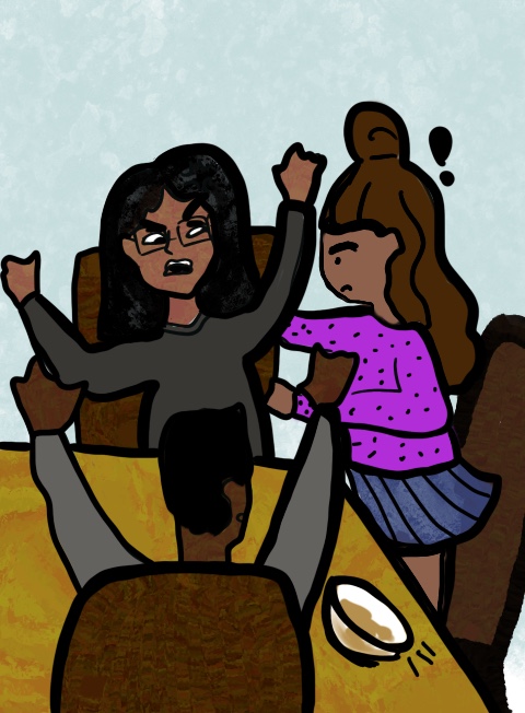 At dinner time, I eat with my family, and from time to time, my sister and parents glance at me. They’re usually sharing funny stories that happened at work and school during dinner, but not today. They know something’s up with me. Immediately after finishing my food, I get up and pick up my plate and fork, but before I take a step toward the dishwasher, my dad calls, “Ruby…”.