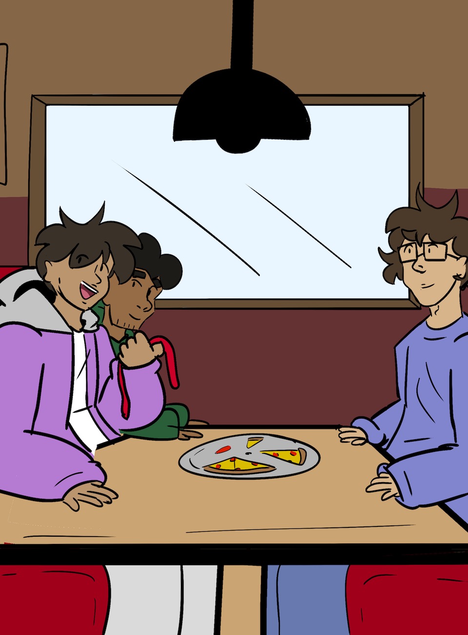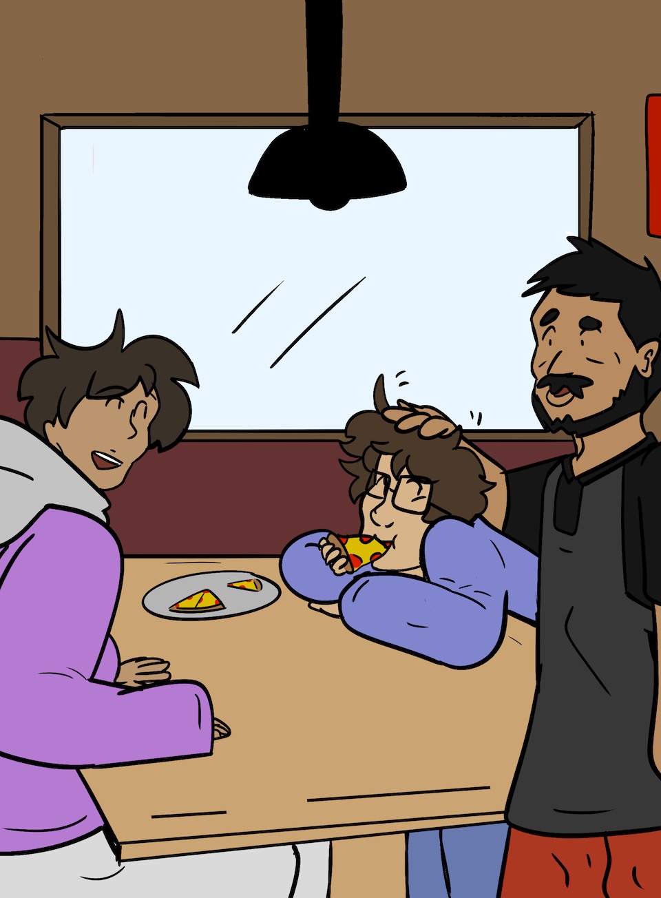 As they left, I grinned, looking at the slice of pizza in front of me.