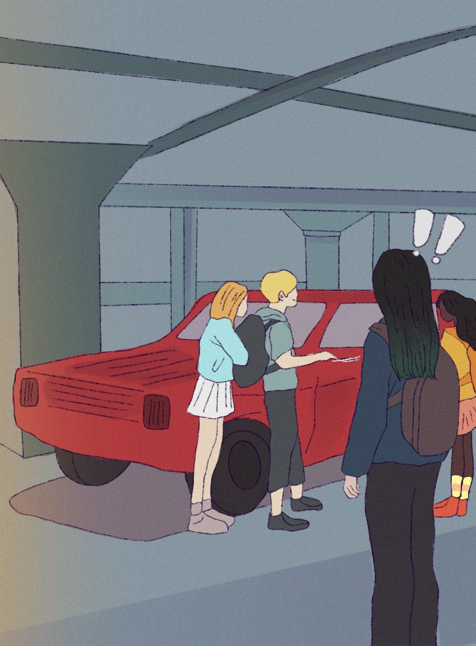 We went to the parking lot, and I showed the group which car was Mr. Johnson’s. Then one of the boys took out his keys. He bent down and prepared to carve something on the surface of the car’s shiny new paint job.