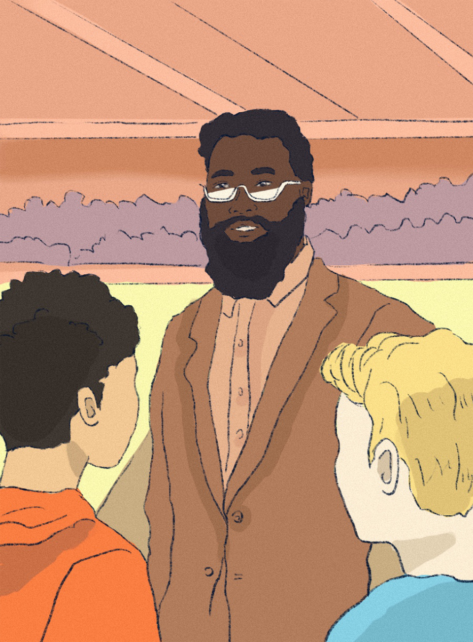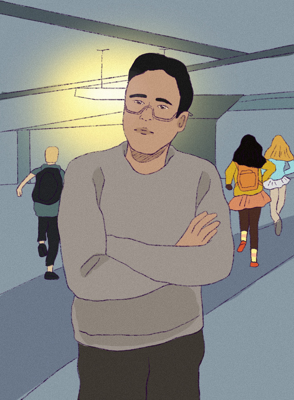 Behind me was Mr. Jenkins, one of the engineering teachers. Everyone who had him said he was the coolest teacher in the entire school. He made eye contact with me.