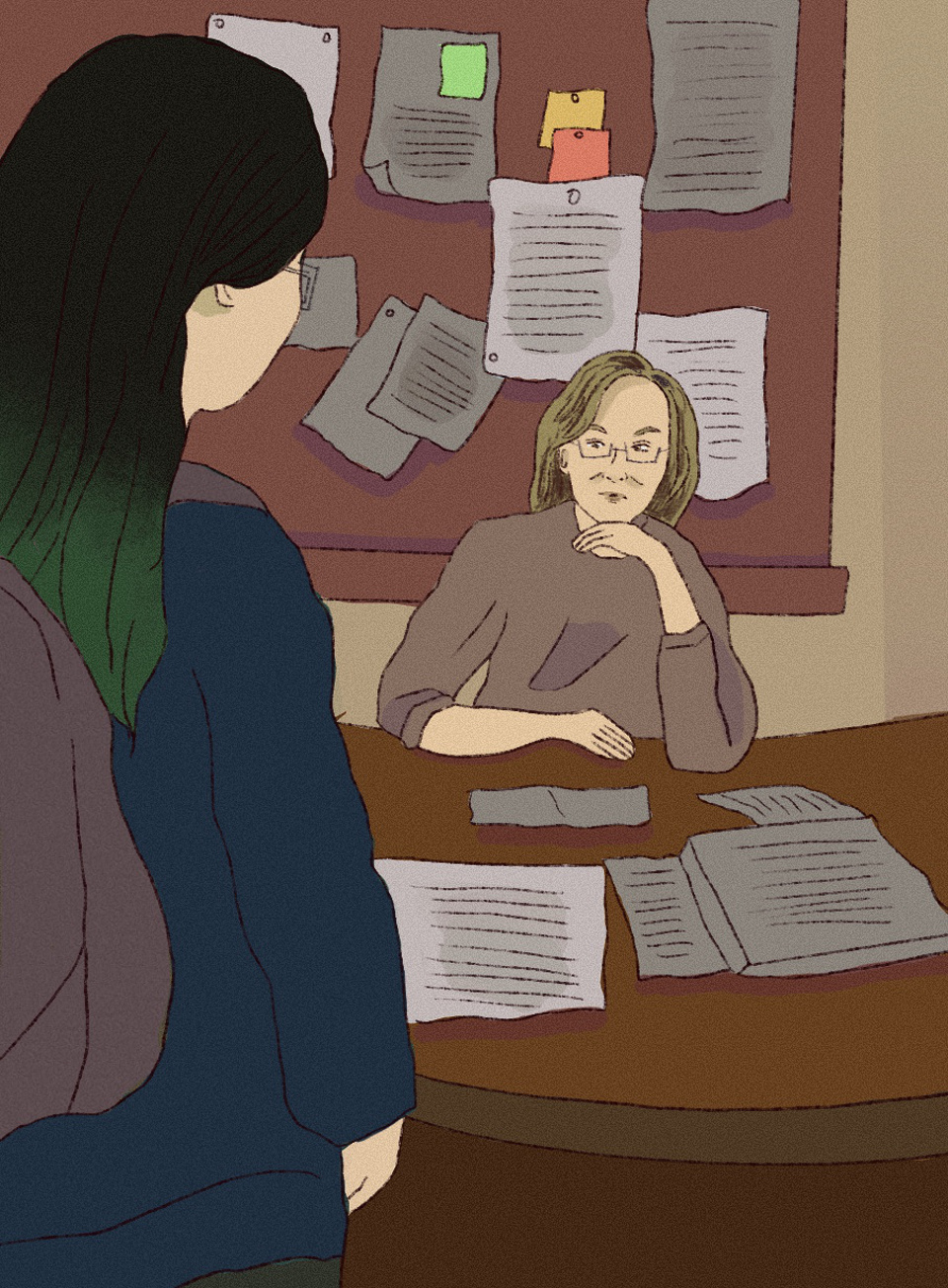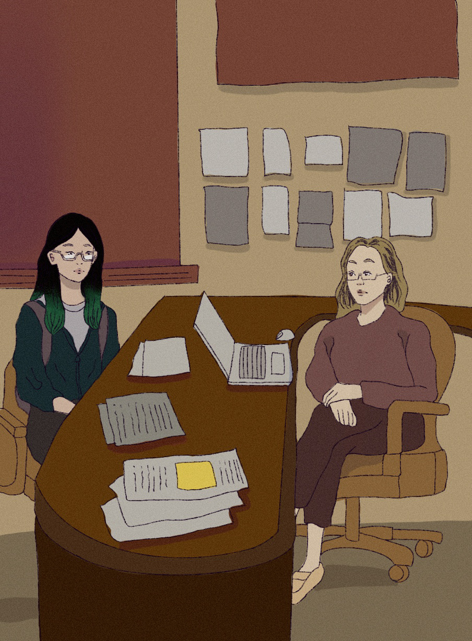 “Miss Kim, please sit,” Principal Harris said, motioning toward the uncomfortable-looking wooden seat in front of her desk.