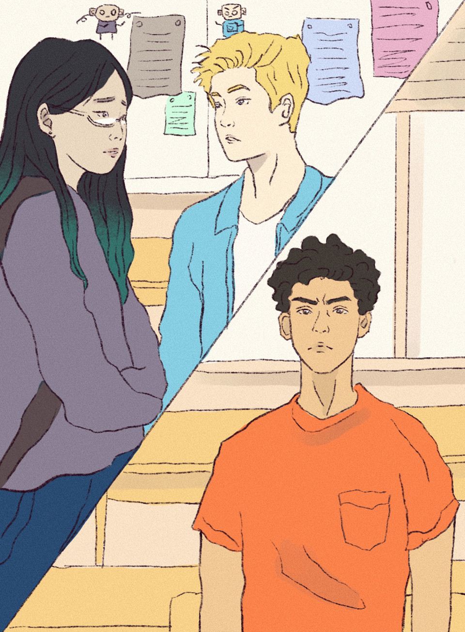 The next day, the start of detention was incredibly boring. I sat in my seat, staring at the colorful posters on Ms. Nelson’s classroom walls, when the door swung open, breaking the silence.