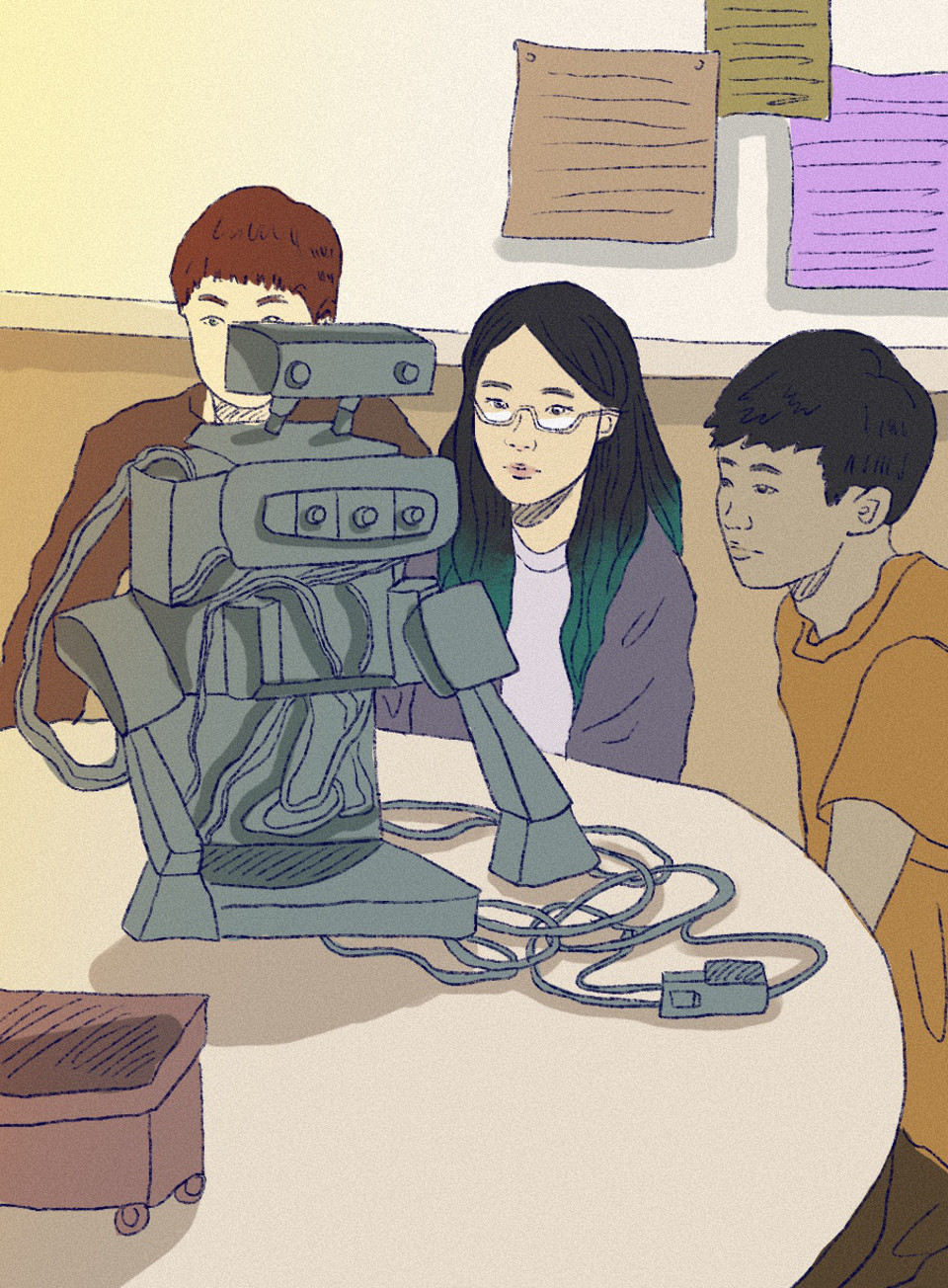 "Hey, could you lend me a hand with this circuit?" one of the other team members asked, gesturing toward a tangled mess of wires.