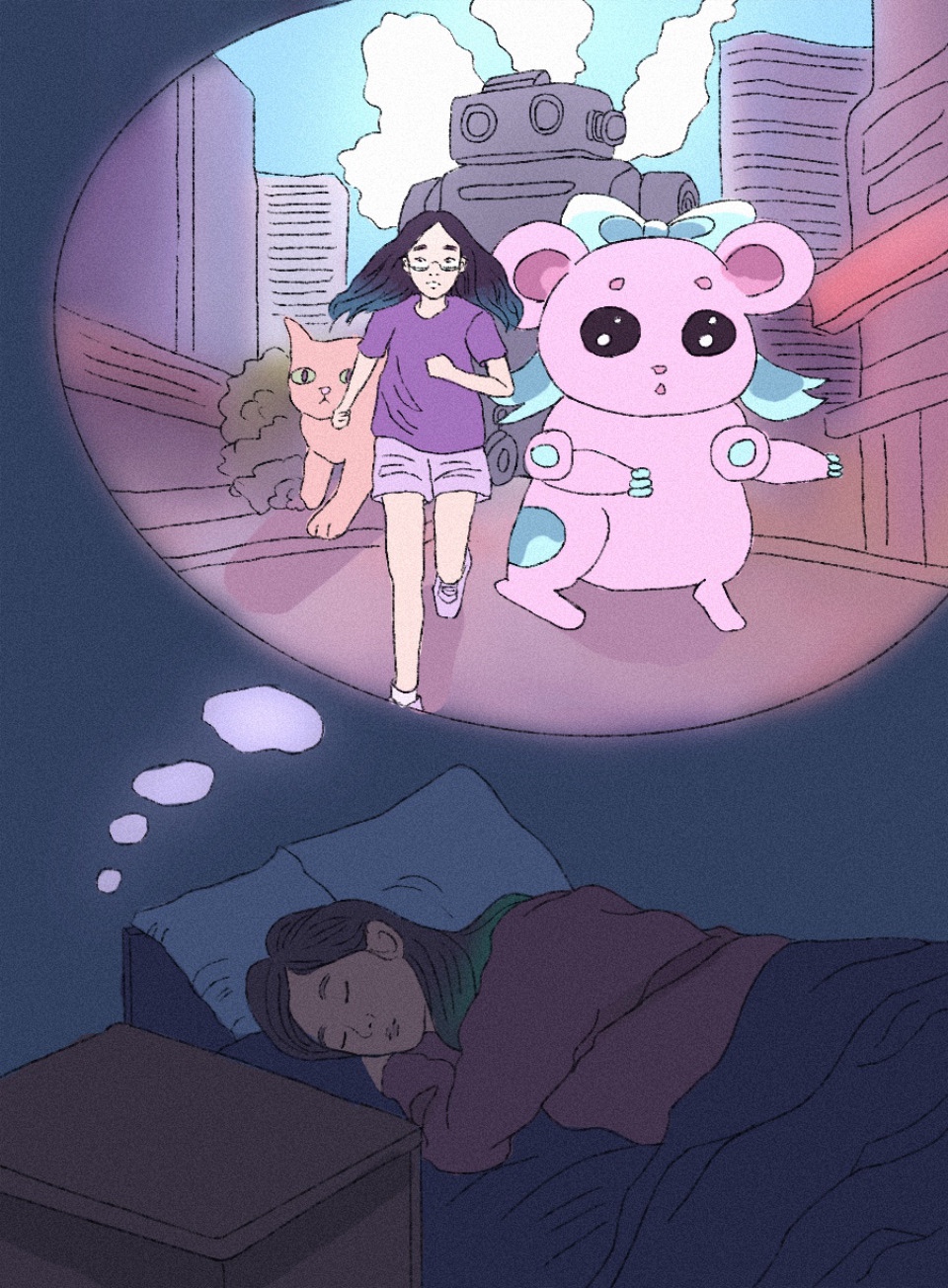 That night, I dreamt about Bubblegum. I shrank to her size, and we were being chased by Mimi and several scary-looking bots. I think I heard my teammates laughing at us, too.