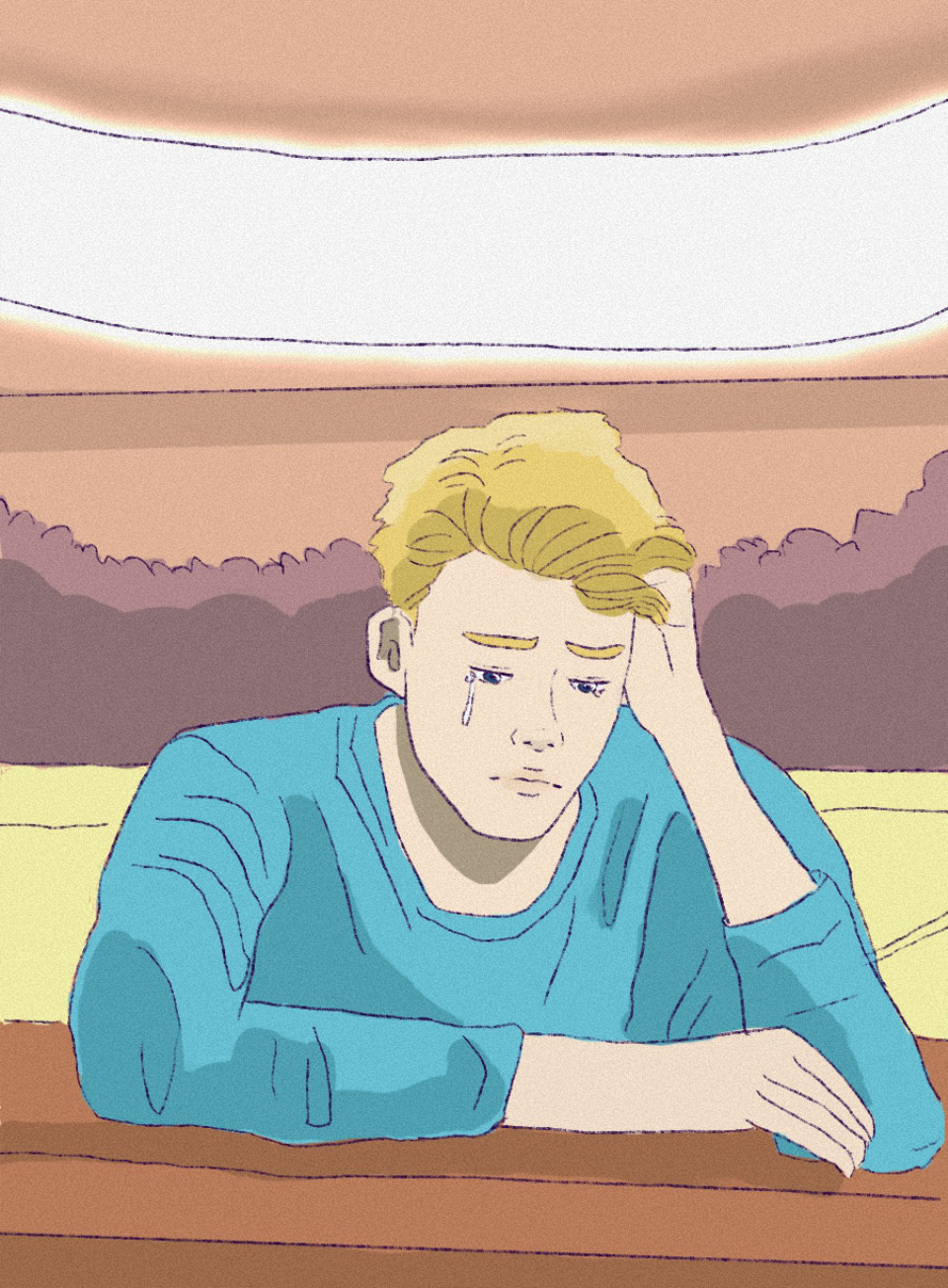 “You’re late,” Ms. Nelson said harshly, focused on grading papers. “Sit down.”