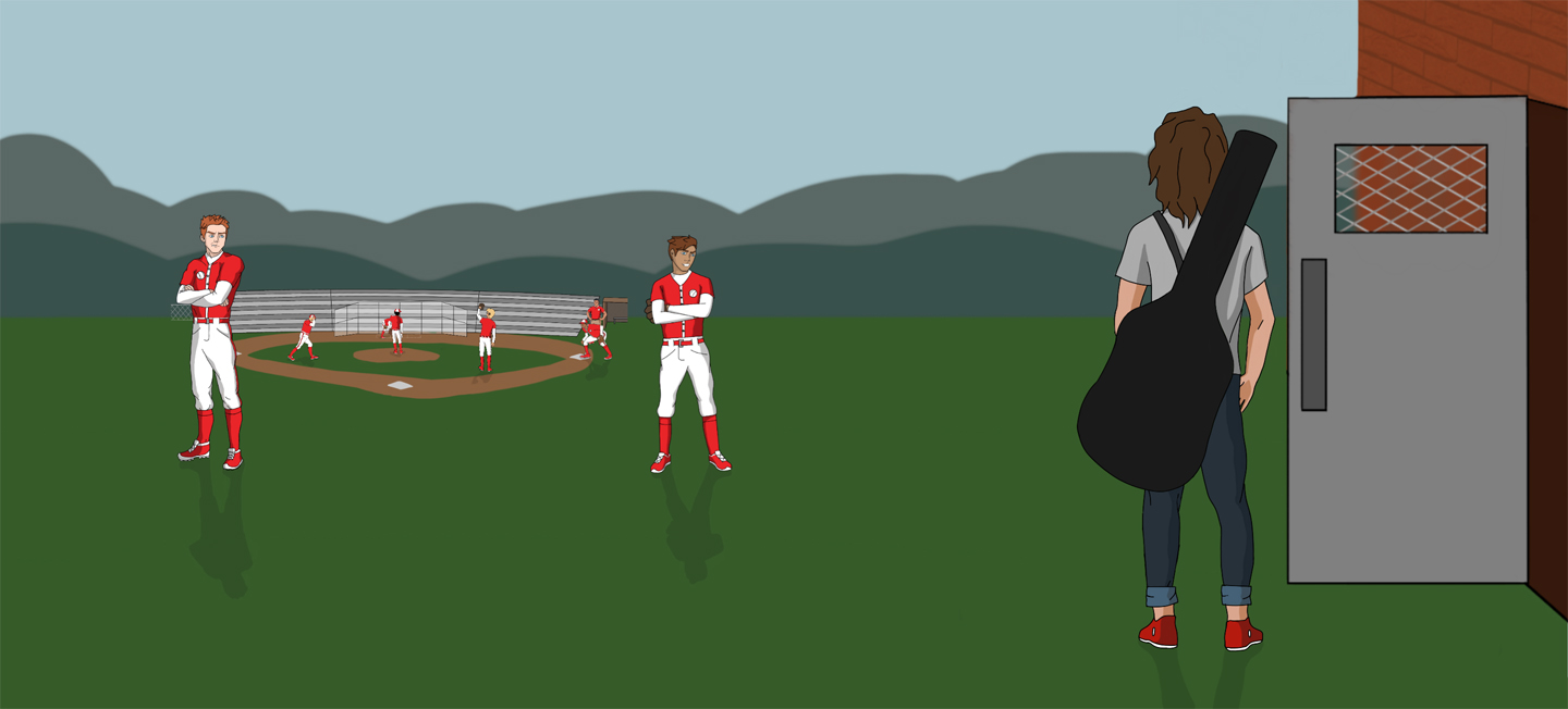 I decided to give Charlene’s lunch table a try the next day, and I had a nice enough time with the band kids. I figured so what if the baseball guys made fun of me. I could be comfortable with other musicians, that’s all. But as I was walking out of the cafeteria, one of the guys from the baseball team stopped me as I was leaving.